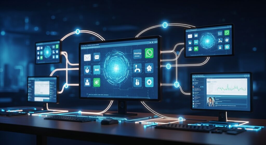 Automação multicanal com IA é a capacidade de interligar todos os pontos de contato com o consumidor — como e-mail, WhatsApp, redes sociais, anúncios, SMS e chatbot — de forma coordenada, adaptativa e baseada em dados.